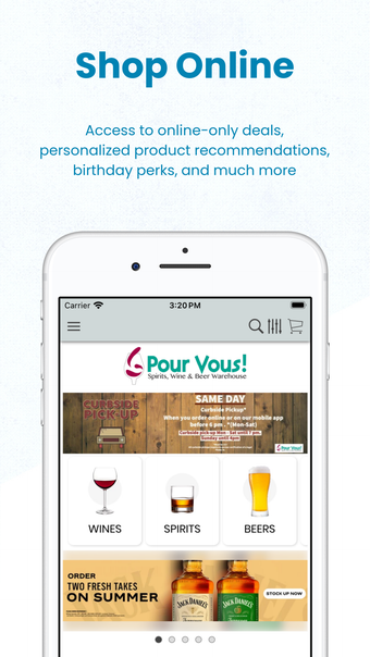 Pour Vous Wine Spirits Beer är en användarvänlig app för iPhone som erbjuder en omfattande plattform för att utforska och beställa viner och spritdrycker. Appen gör det enkelt att bläddra bland det tillgängliga sortimentet i butiken och ger användarna möjlighet att se detaljerad information om varje produkt. Dessutom kan man enkelt välja mellan hemleverans eller avhämtning, vilket ger flexibilitet i hur man vill få sina varor.